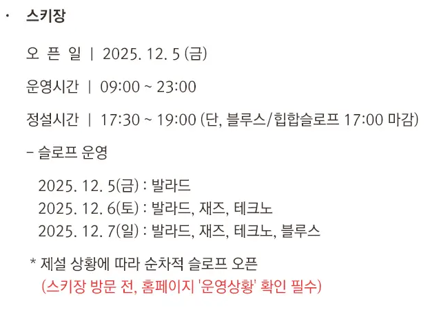 🎿 비발디파크 스키장 2025 시즌 개장 안내