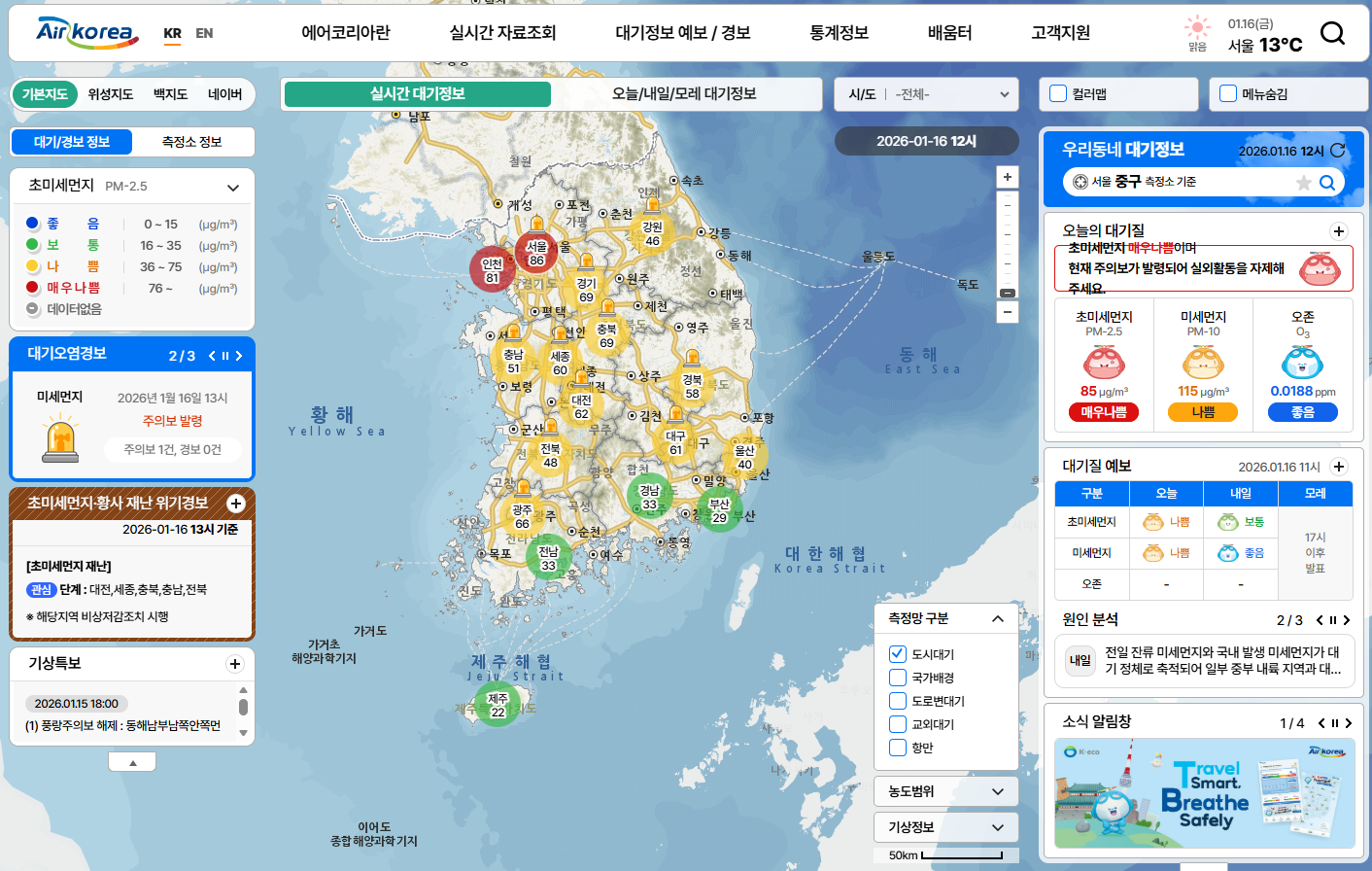 우리나라 미세먼지는 정부에서 운영하는 공식 대기환경 정보 시스템을 통해 가장 정확하게 확인할 수 있습니다. 전국에 설치된 대기오염 측정소에서 실시간으로 수집한 데이터를 바탕으로 제공되기 때문에 신뢰도가 높습니다.